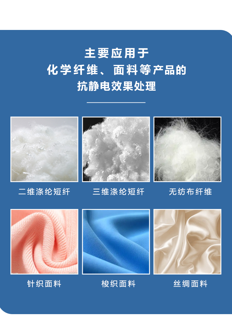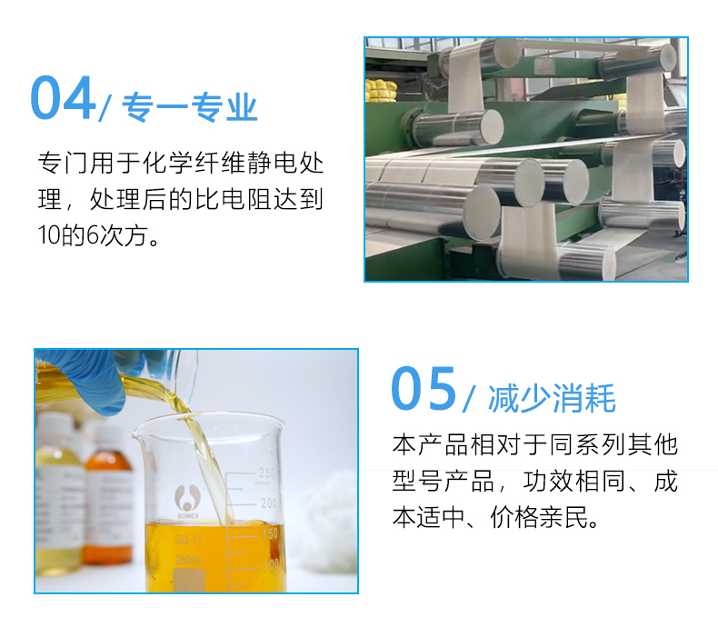 公司產(chǎn)品分為化纖助劑產(chǎn)品系列、抗靜電劑產(chǎn)品系列、功能性助劑產(chǎn)品系列、有機(jī)硅乳液產(chǎn)品系列、硅油產(chǎn)品系列等。